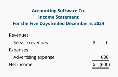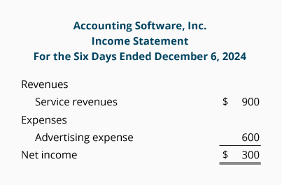 The income statement for Accounting Software, Inc. for the six days ended December 6 is shown here: