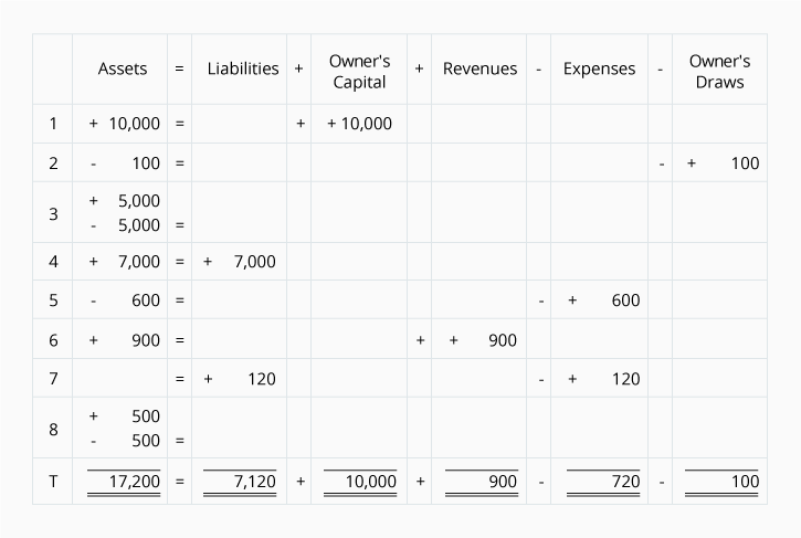The totals after the first eight transactions indicate that the corporation had assets of $17,200. The creditors provided $7,120 and the company’s stockholders provided $10,080. The accounting equation also indicates that the company’s creditors had a claim of $7,120 and the stockholders had a residual claim of $10,080.